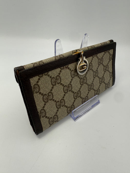 Vintage Gucci Supreme Canvas Unisex Wristlet with Brown Leather Accents