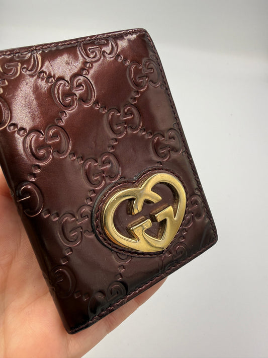 Gucci Burgundy Patent Leather Guccissima Heart Interlocking GG Card Holder