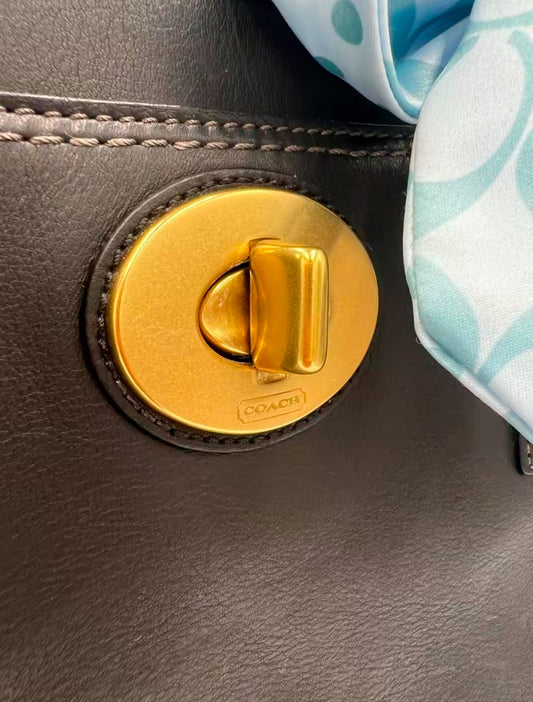Coach Black Leather Zippered Shoulder Bag w/Branded Twilly