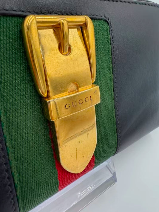 Gucci Calfskin Leather Sherry Buckle Zippy Wallet