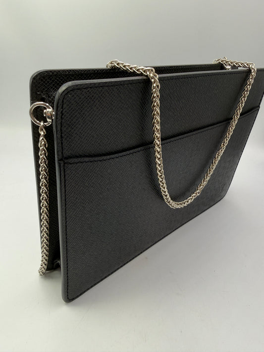 Louis Vuitton Black Taiga Leather Clutch With Unbranded Insert And Chain SR1003