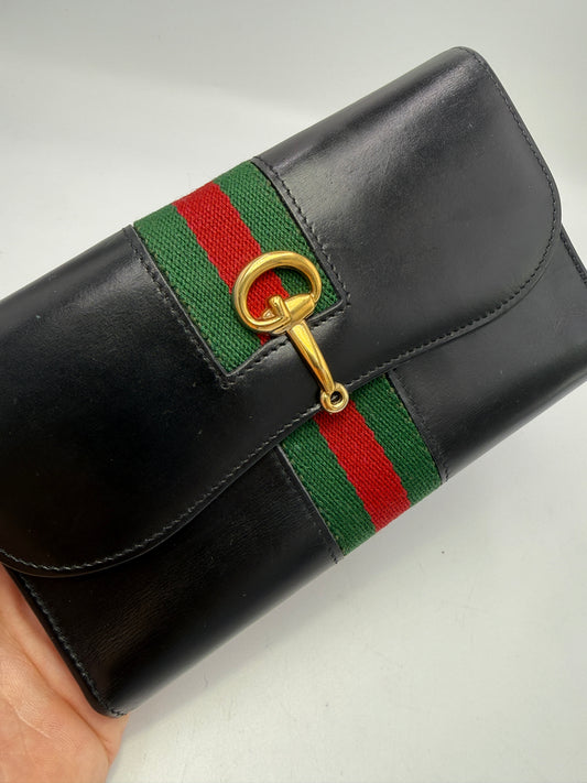 Gucci Vintage Black Leather Horse-bit Sherry Line Wallet