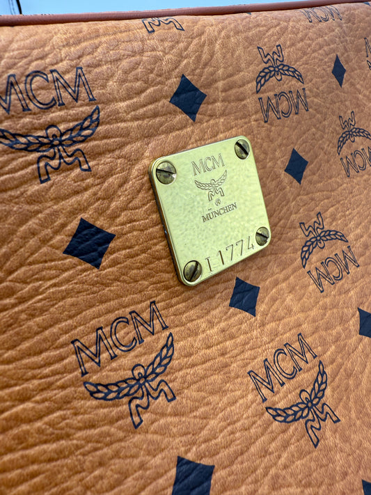 MCM Cognac Visetos Coated Canvas Toiletry Bag 30 cm