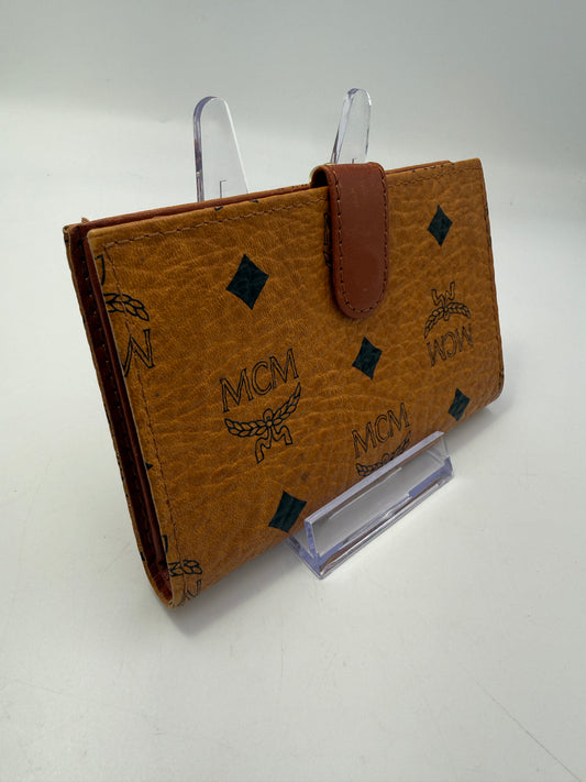 MCM Cognac Visetos Coated Canvas Compact Kisslock Wallet