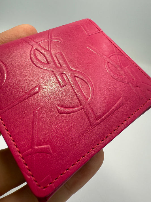 YSL Pink Leather Compact Coin Purse Full Inclusion