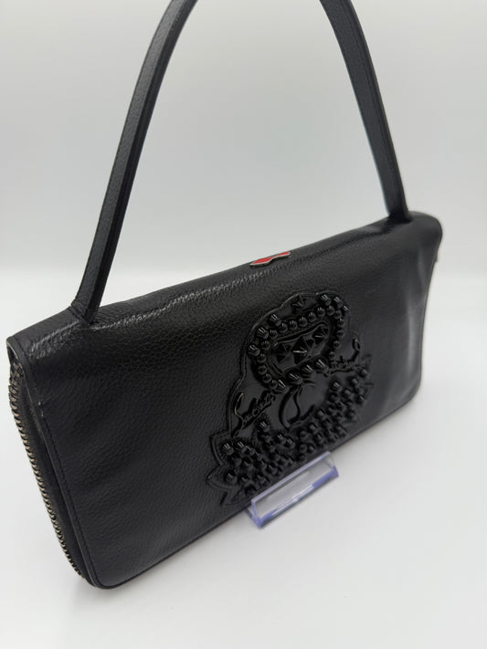 Christian Louboutin Black Leather Oversized Clutch Wallet