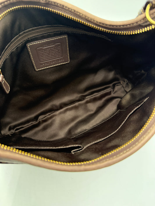 Coach Black Leather Zippered Shoulder Bag w/Branded Twilly