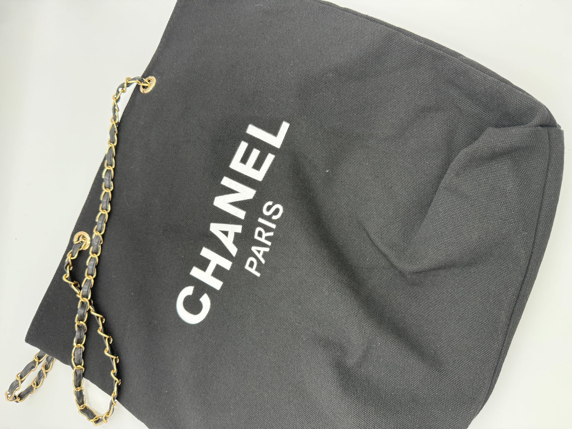 Elevate your style with this exclusive Chanel Black Canvas VIP Tote, a rare and coveted piece that seamlessly blends luxury with practicality. Designed with Chanel’s signature elegance, this tote features gold-tone hardware and gorgeous leather-threaded chain straps, offering a refined yet bold aesthetic.