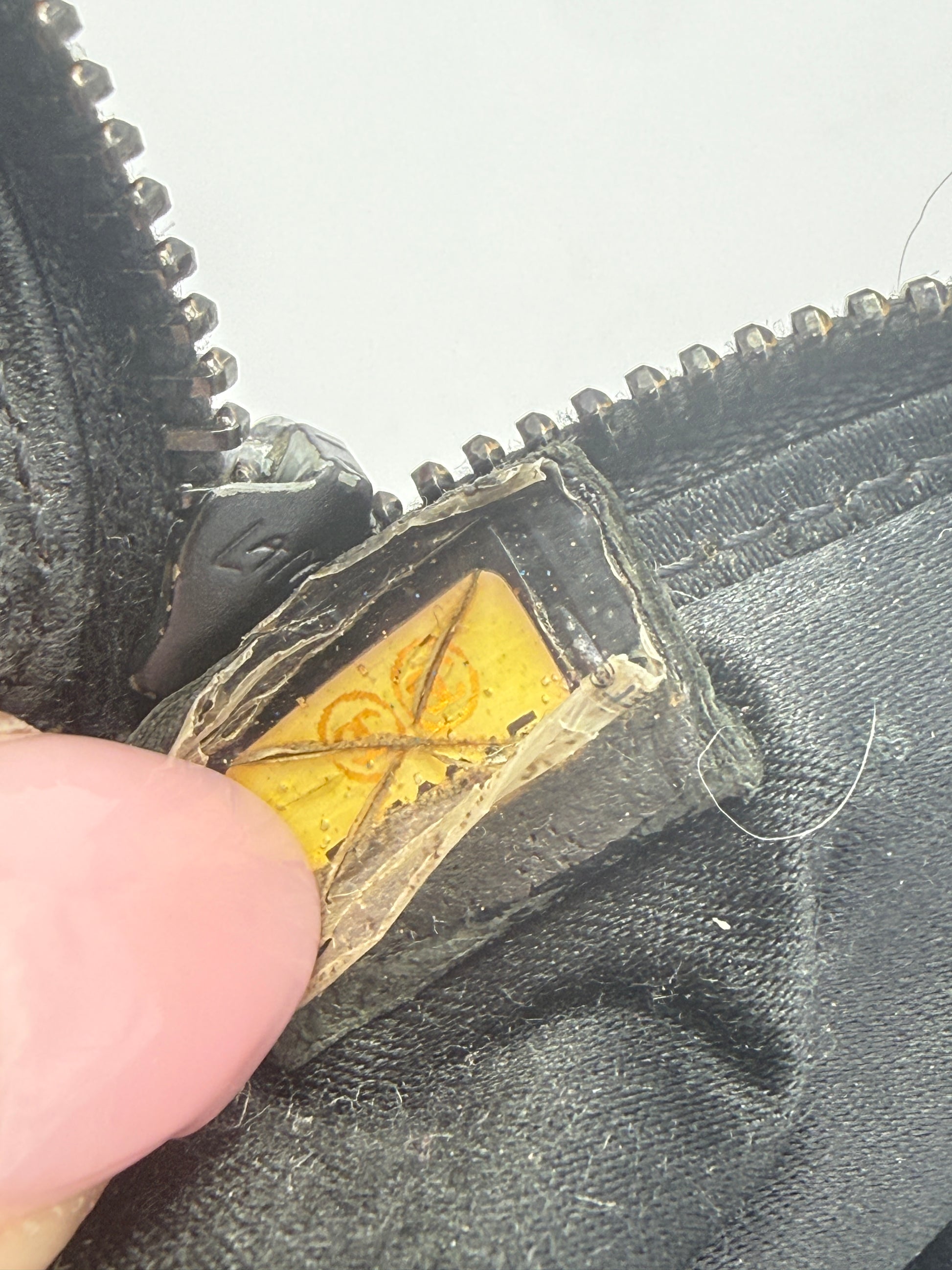 It features a zip-top closure with a metal Chanel pull tab and a satin-lined interior with “Chanel Made in France” branding. The authenticity sticker is still visible inside, adding to its collectible appeal.