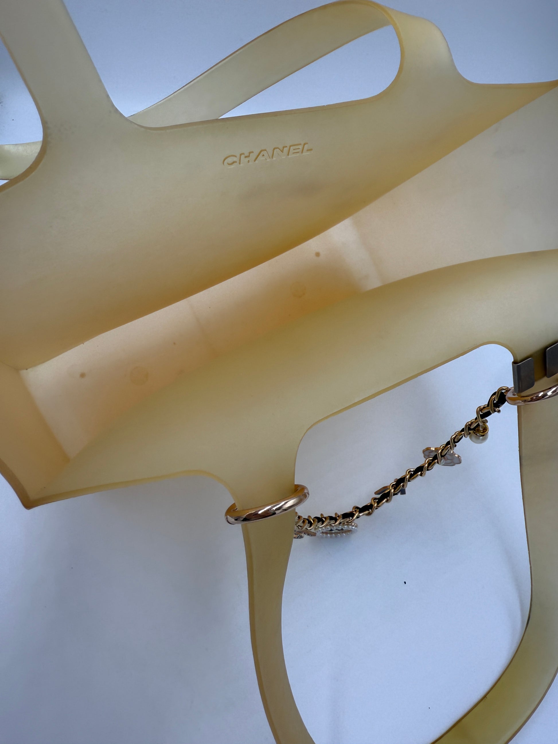 Make a splash this season with the Chanel Jelly Tote—the ultimate blend of luxury and practicality! Crafted from durable, weather-resistant jelly material, this tote is perfect for beach days, poolside lounging, or any sunny adventure. Featuring the iconic Chanel logo and an unbranded bag charm for a stylish touch, she’s designed to handle water, sand, and sun with ease. Lightweight yet spacious enough for all your essentials, she’s your go-to spring and summer companion. Plus, shop with confidence—this beauty comes with a certificate of authenticity. Don’t miss out on this chic, all-weather must-have!