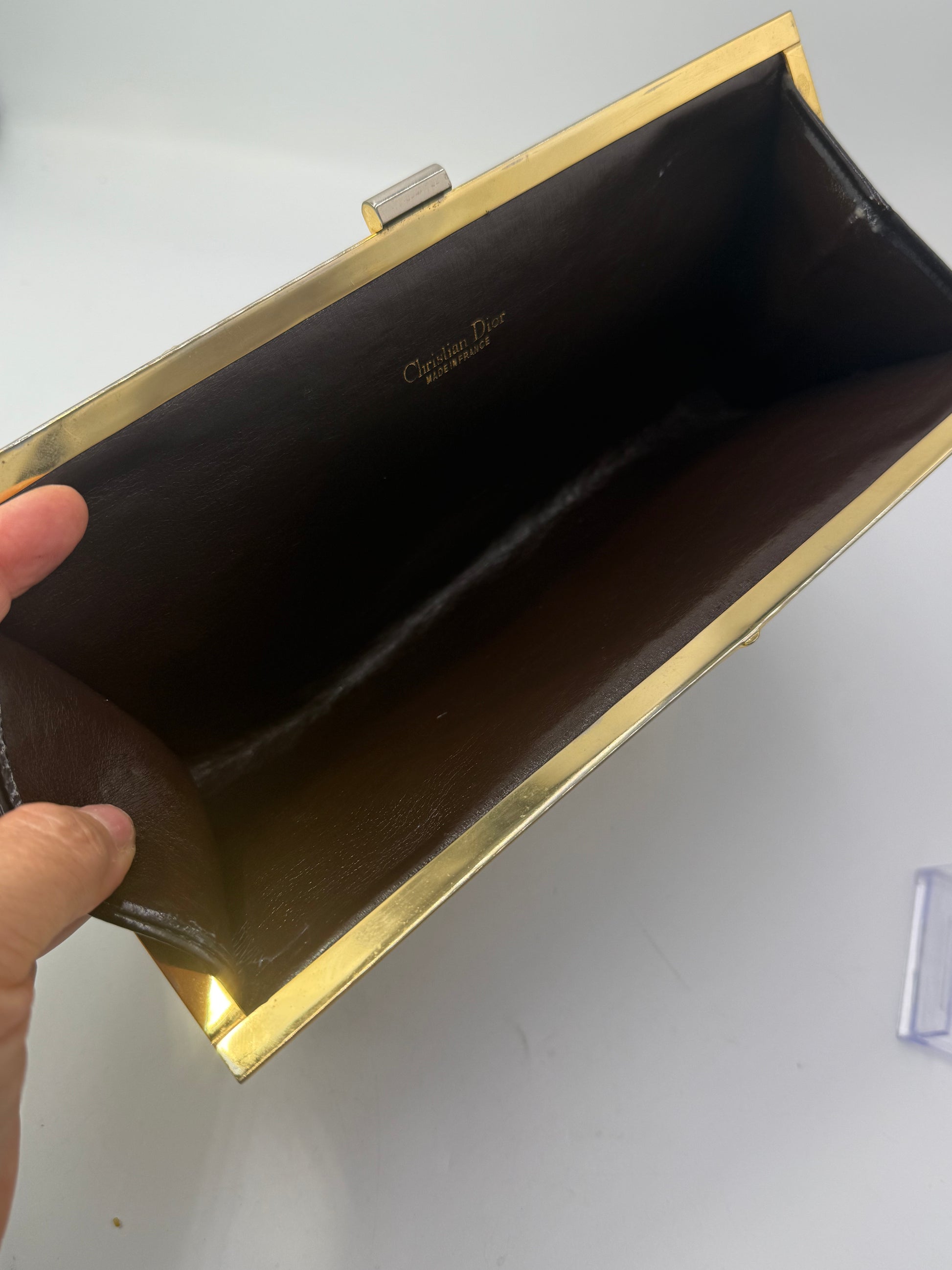 The classic kiss-lock closure opens to reveal a spacious, leather-lined interior stamped with “Christian Dior – Made in France”, offering room for all your evening essentials. Slim yet structured, it’s the perfect balance of chic design and everyday function, whether you carry it to a formal event or as a statement accessory to elevate your daily look.