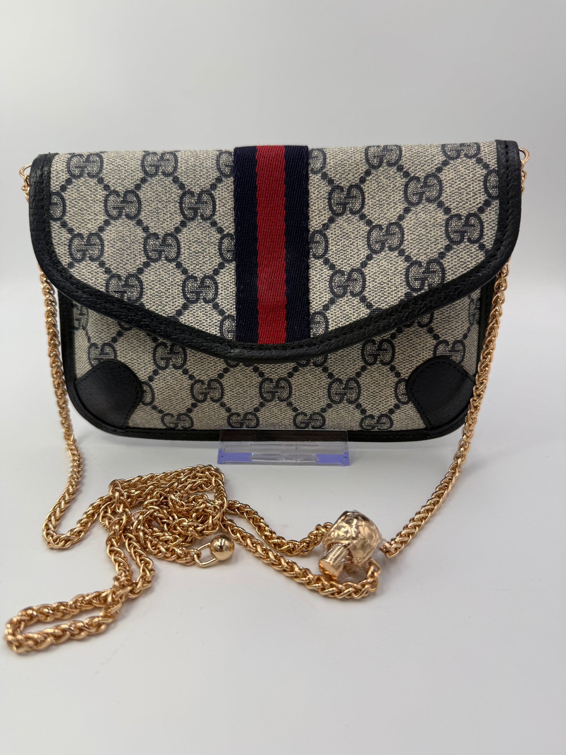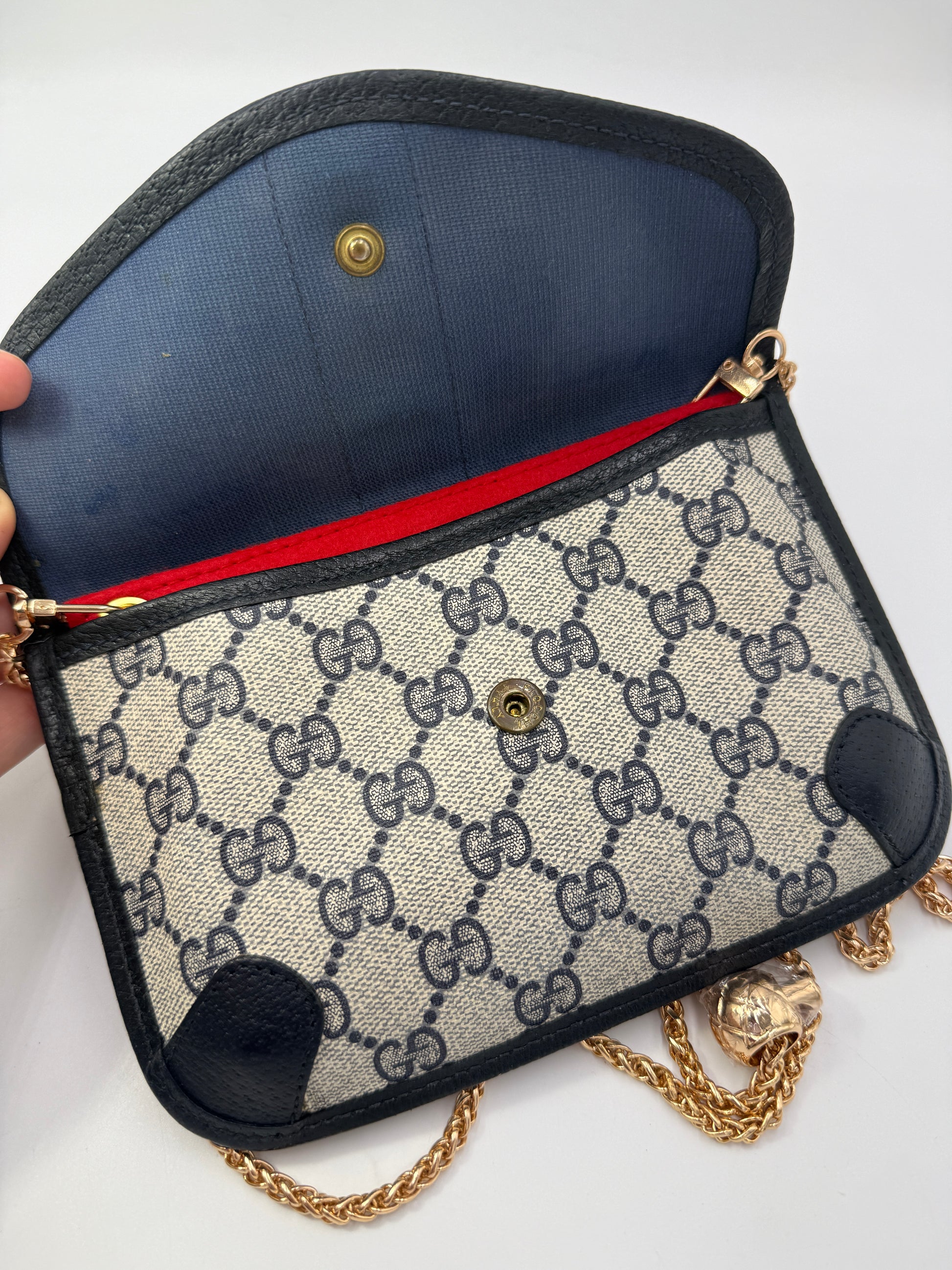 Step into timeless luxury with this vintage Gucci Guccissima Ophidia Pouch from the original Accessories Collection. Crafted in classic GG canvas with navy blue leather trim, accented by Gucci’s iconic red & navy web stripe, and finished with a blue fabric interior, this rare piece embodies heritage Gucci design. Compact yet versatile, it’s more than just stylish — it’s adaptable to your lifestyle.