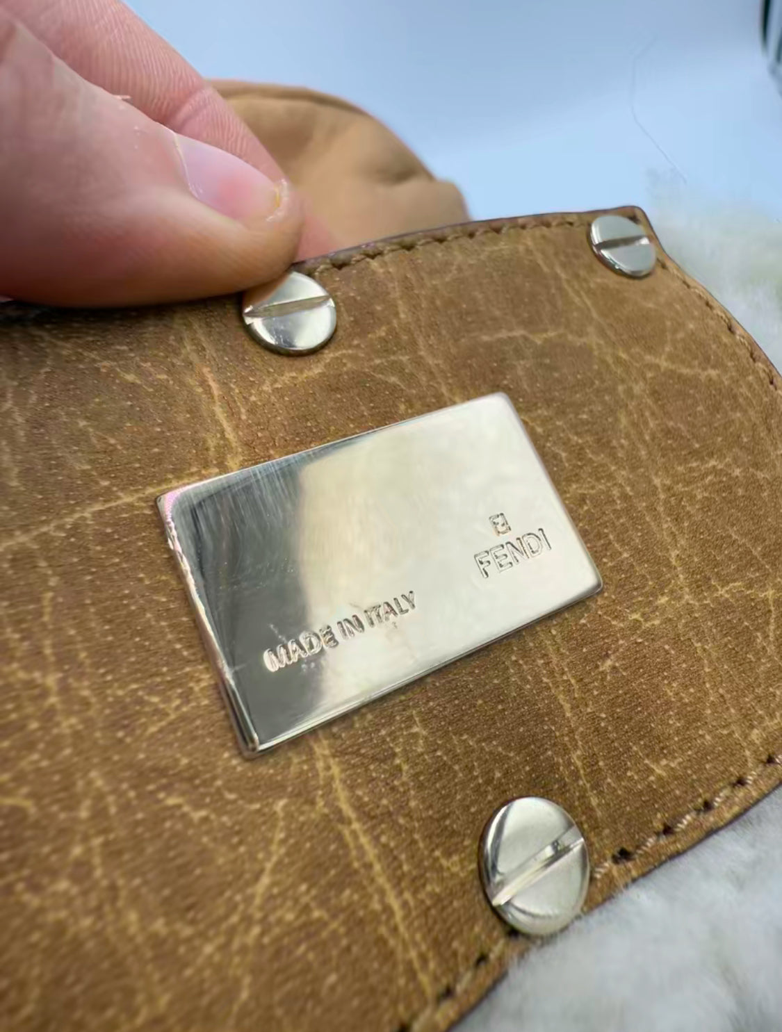 Fendi Nubuck Leather Shearling Hobo Shoulder Bag