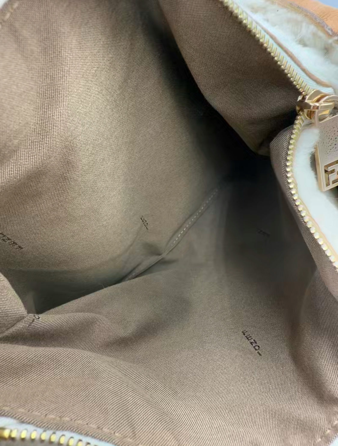 - Interior: The middle section of the bag has a zip closure for added security, with sherling lining in beige color for a sophisticated touch.