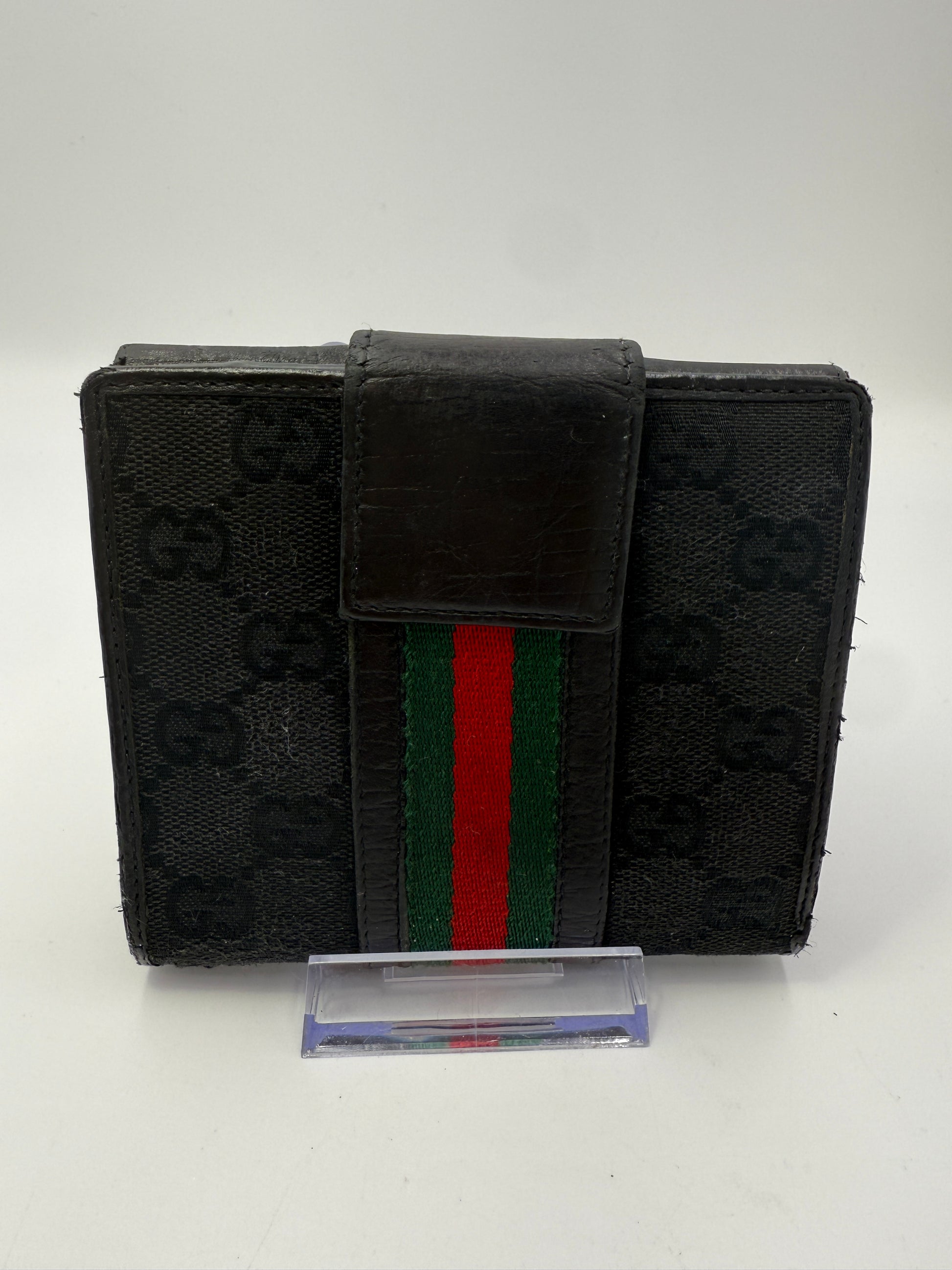 Authentic Vintage Gucci Black Leather & Canvas Compact Wallet – Timeless Elegance with Iconic Style