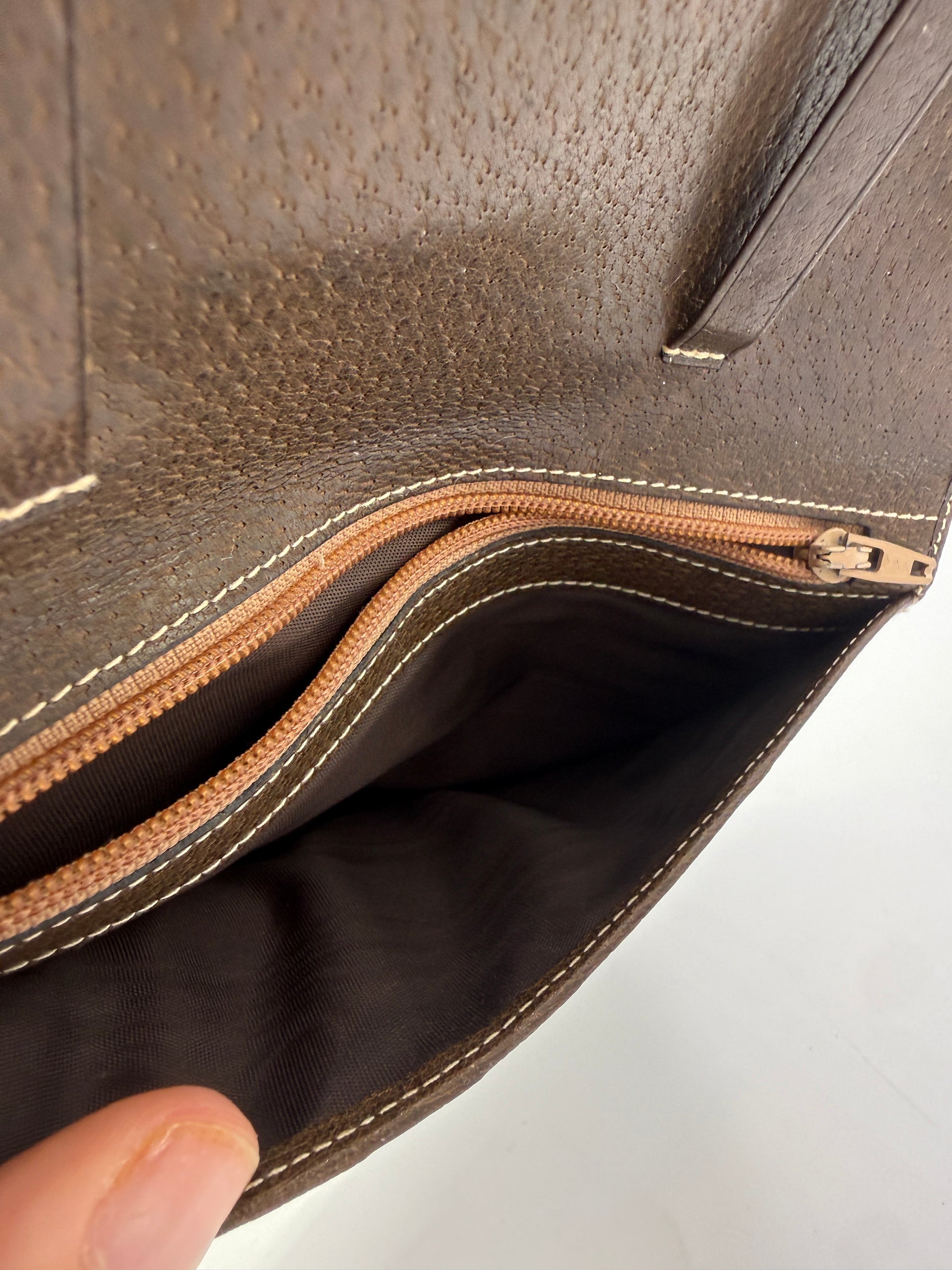 Travel in timeless luxury with this pre-owned Gucci GG Supreme Passport Holder and Organizer, a vintage gem that combines classic design with everyday practicality. Crafted from Gucci’s signature GG Supreme coated canvas and trimmed in rich brown leather, this piece embodies the sophistication of vintage Gucci craftsmanship.