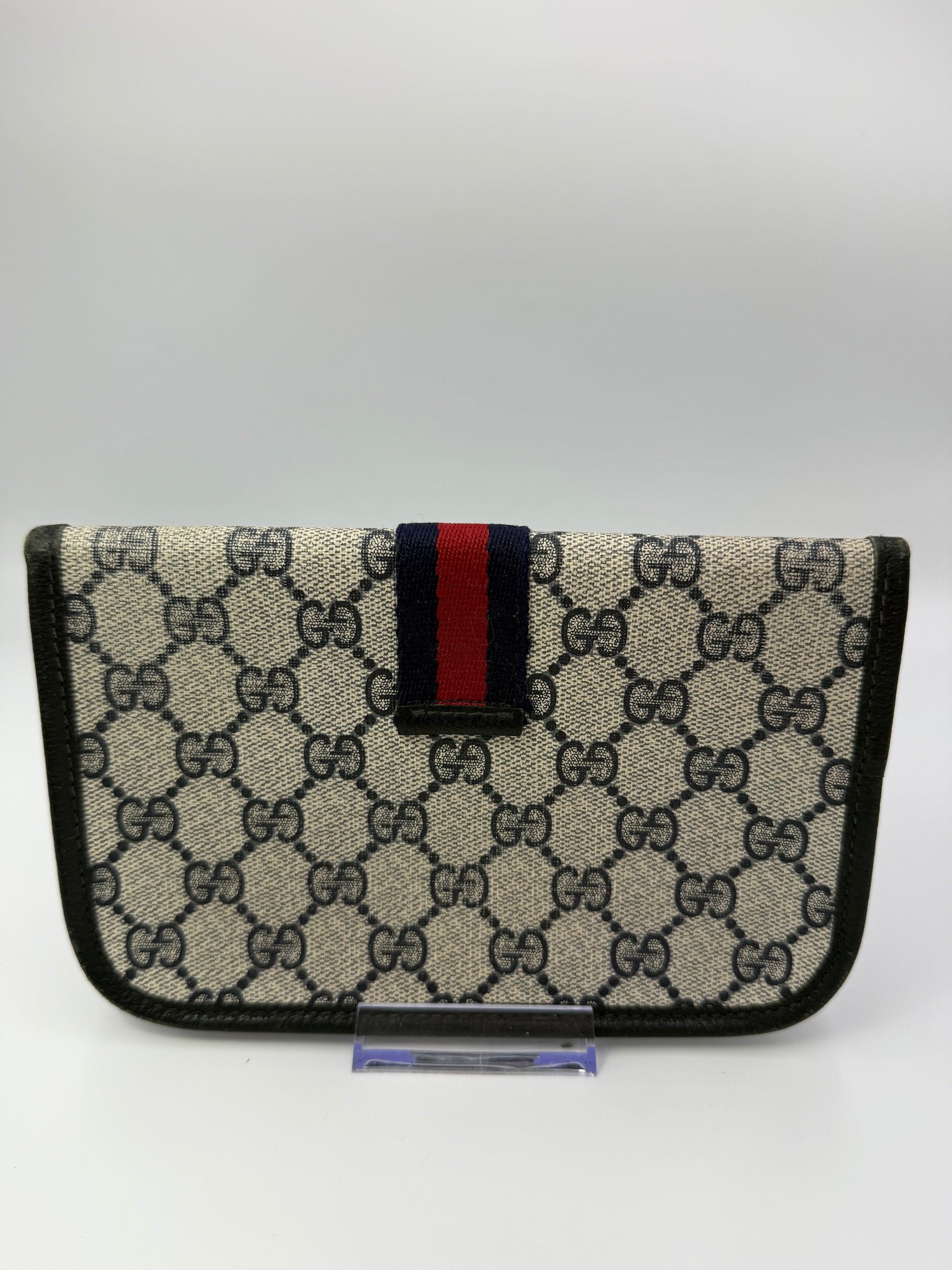 Step into timeless luxury with this vintage Gucci Guccissima Ophidia Pouch from the original Accessories Collection. Crafted in classic GG canvas with navy blue leather trim, accented by Gucci’s iconic red & navy web stripe, and finished with a blue fabric interior, this rare piece embodies heritage Gucci design. Compact yet versatile, it’s more than just stylish — it’s adaptable to your lifestyle.