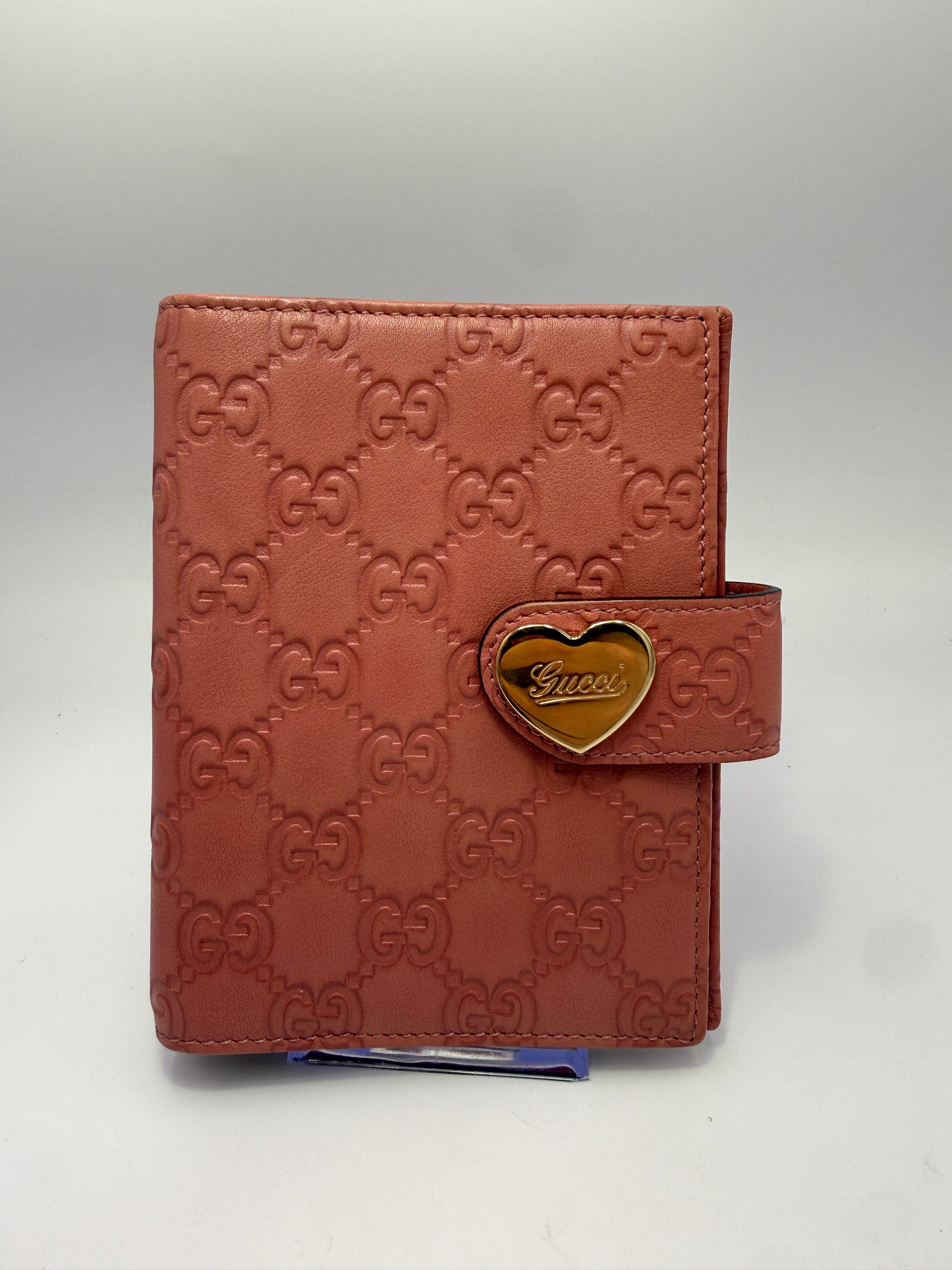 Gucci Guccissima Rose Pink Agenda Cover PM or Passport Holder with Heart Snap