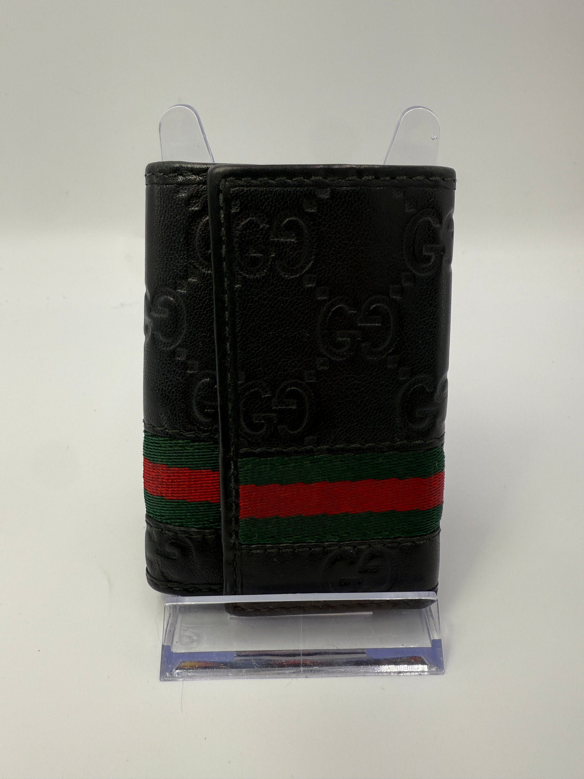 Gucci Guccissima Sherry Black Leather 6 Key Holder