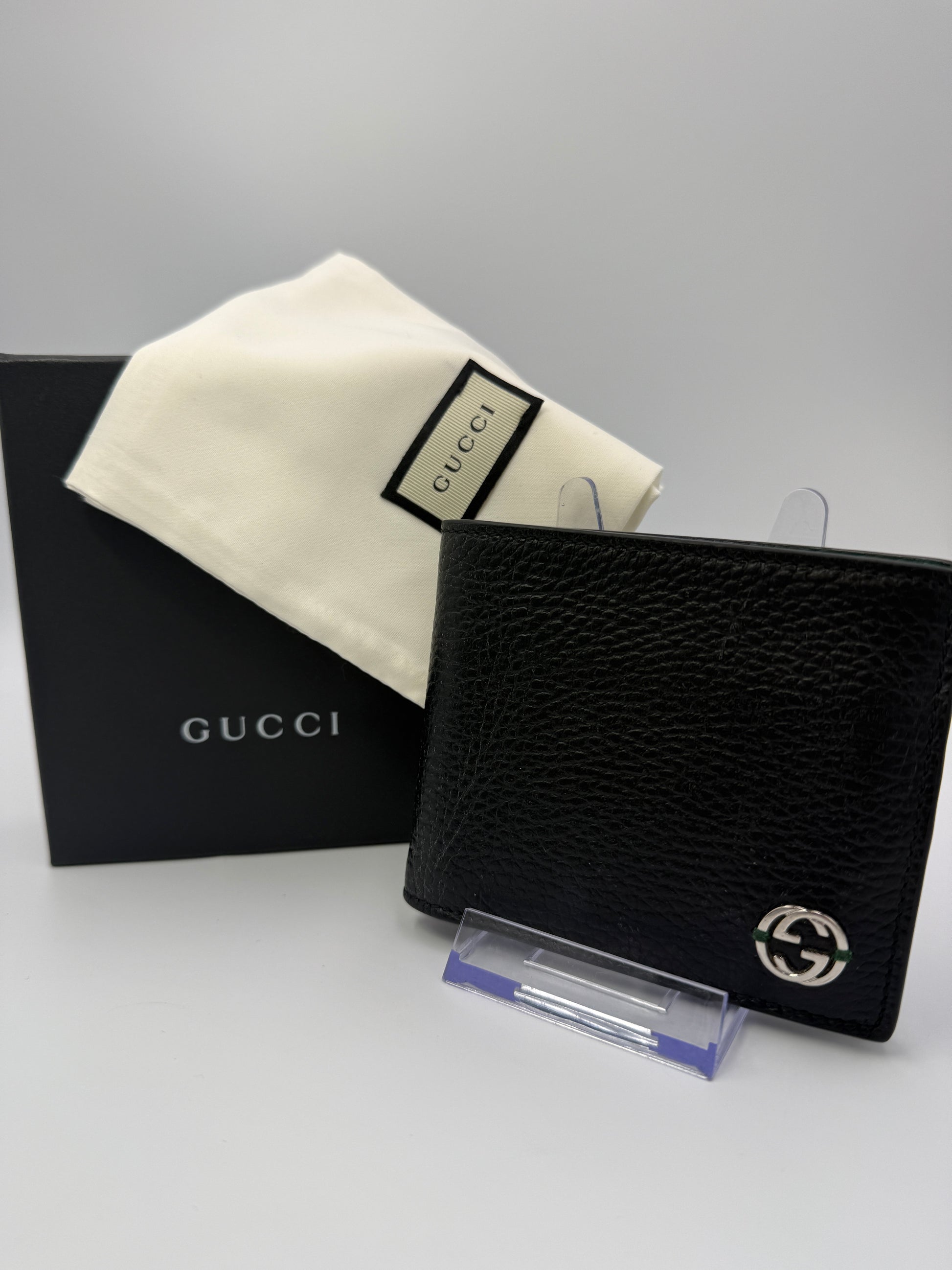 Gucci Leather Men’s Black And Green Bifold Wallet