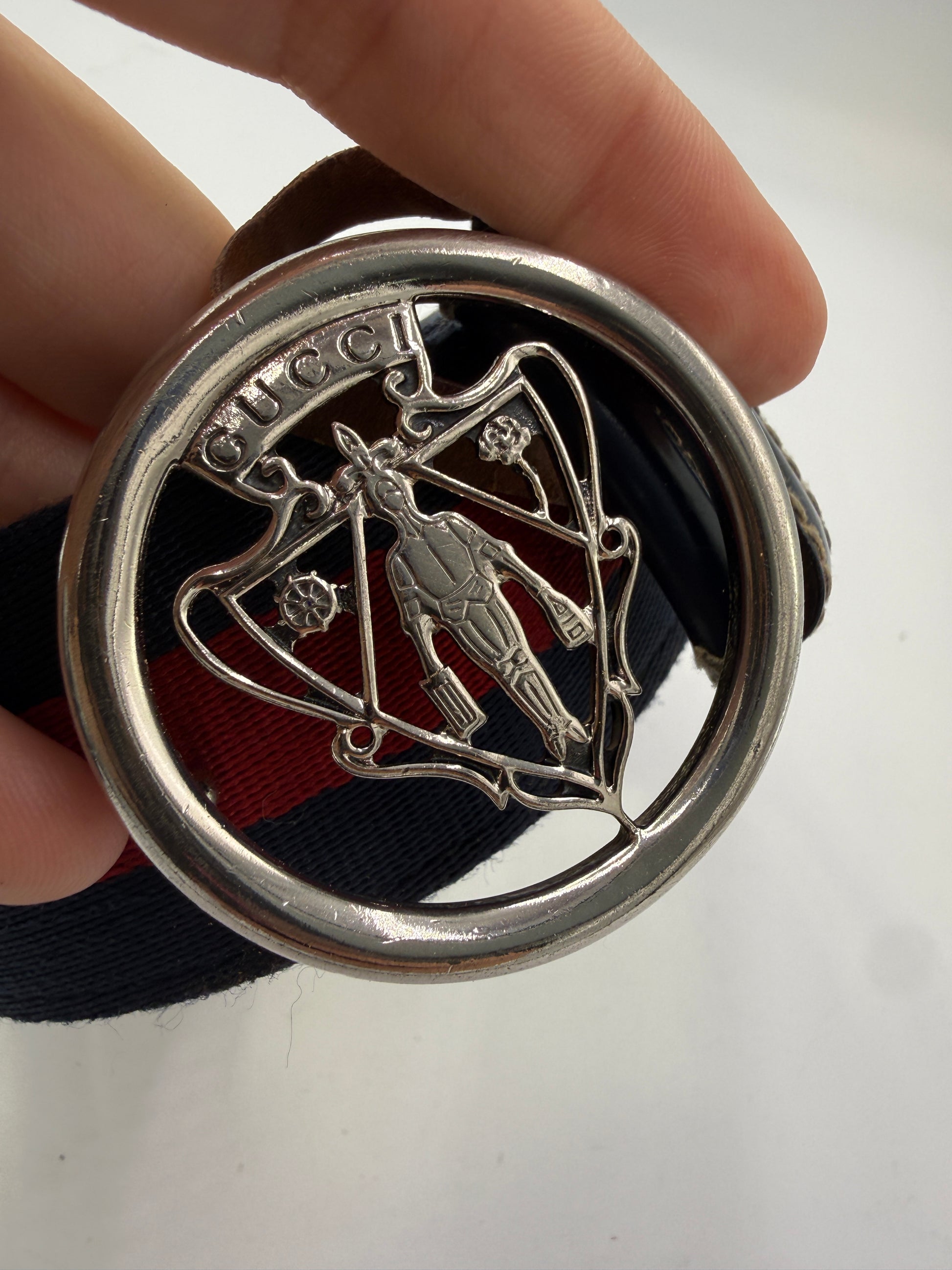 Gucci Web Stripe Knight Crest Belt – Vintage Collector’s Piece
