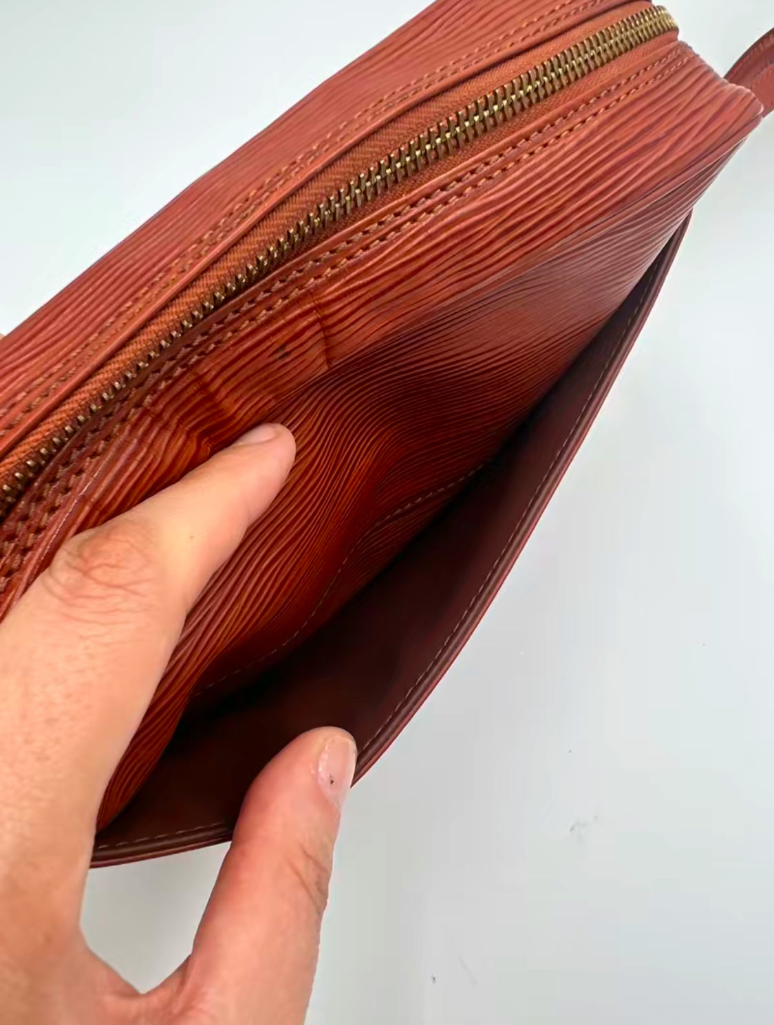 - The Epi pattern adds a sophisticated touch to this crossbody bag.