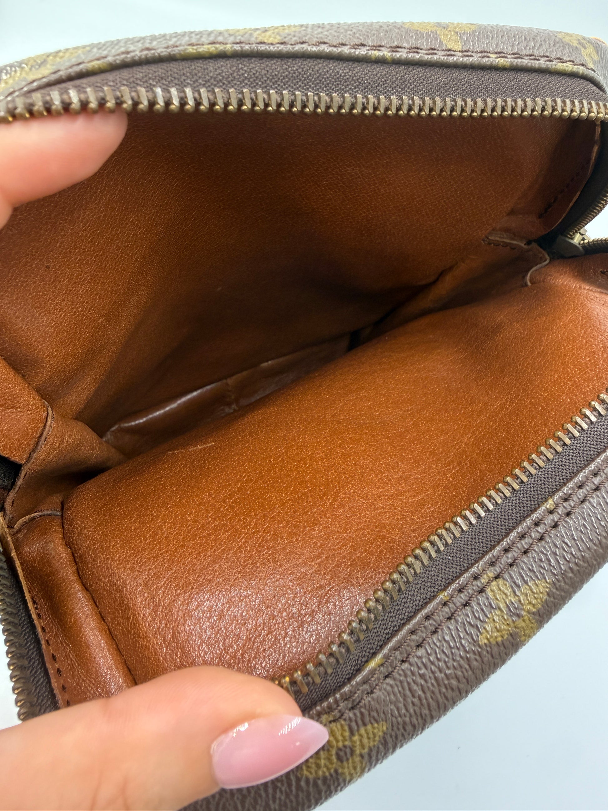 The vachetta leather trim has developed a rich, dark patina that adds depth and vintage character, yet remains free from cracks or dryness. The interior leather lining is clean and smooth, with no stickiness, peeling, or pen marks—a clear sign of careful upkeep.