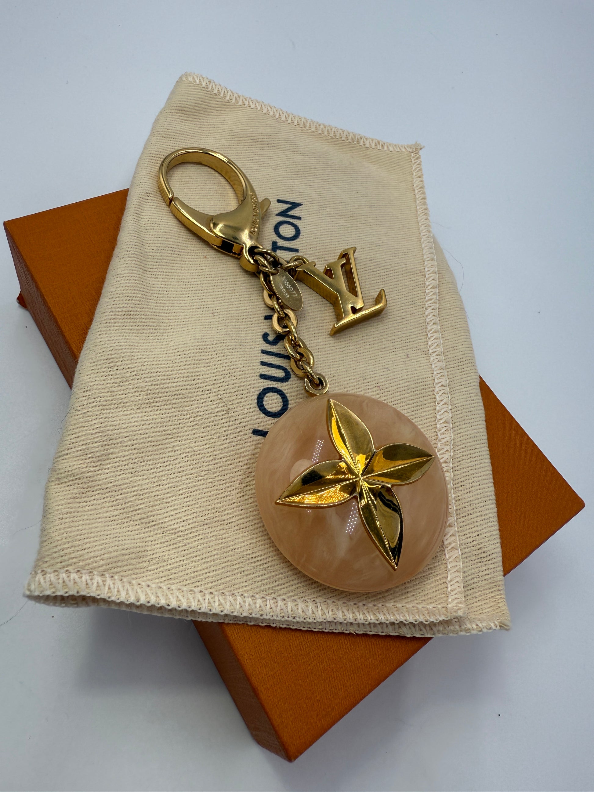 This elegant charm features a lobster clasp and key ring, offering versatile use as either a key holder or a decorative bag accessory. The mix of textures and soft rose/peach tones brings a romantic yet refined edge to your everyday essentials—perfect for the Louis Vuitton lover who appreciates unique, eye-catching detail.