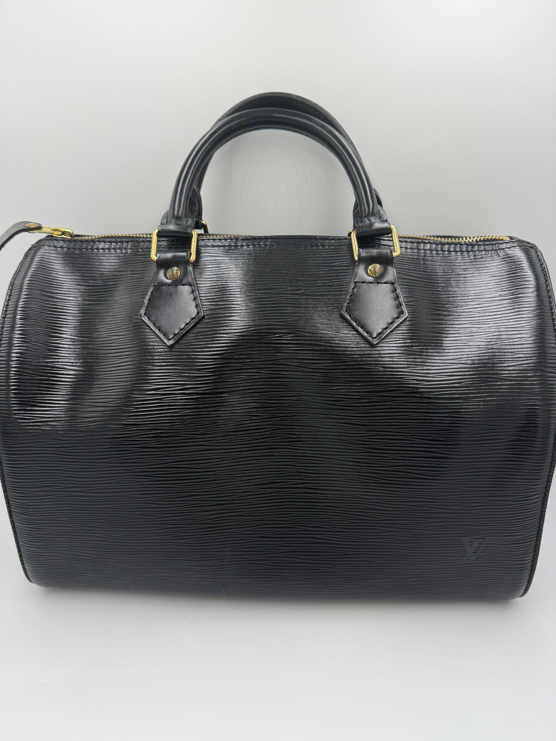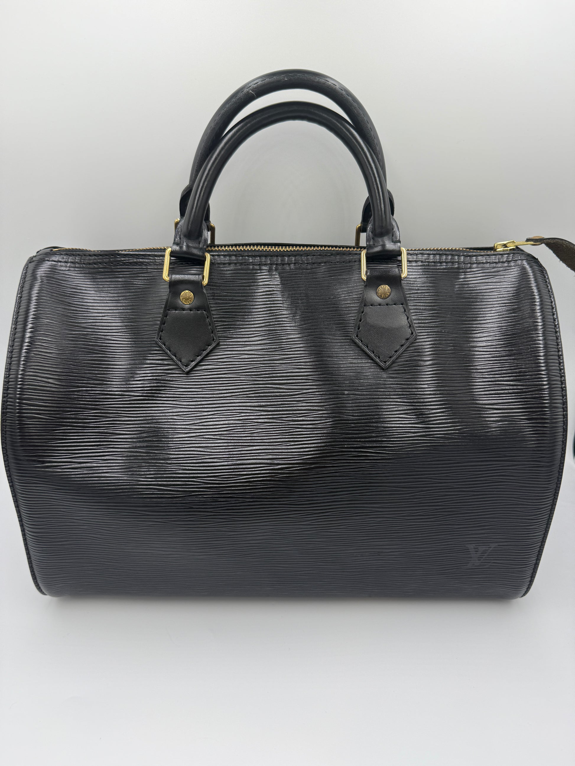 Owning this historic piece not only signifies an appreciation for Louis Vuitton’s storied craftsmanship but also serves as a testament to enduring style and practicality. With its blend of iconic design, durable materials, and elegant aesthetics, the Louis Vuitton Speedy 30 in black Epi leather remains a coveted accessory for discerning individuals who value both form and function.
