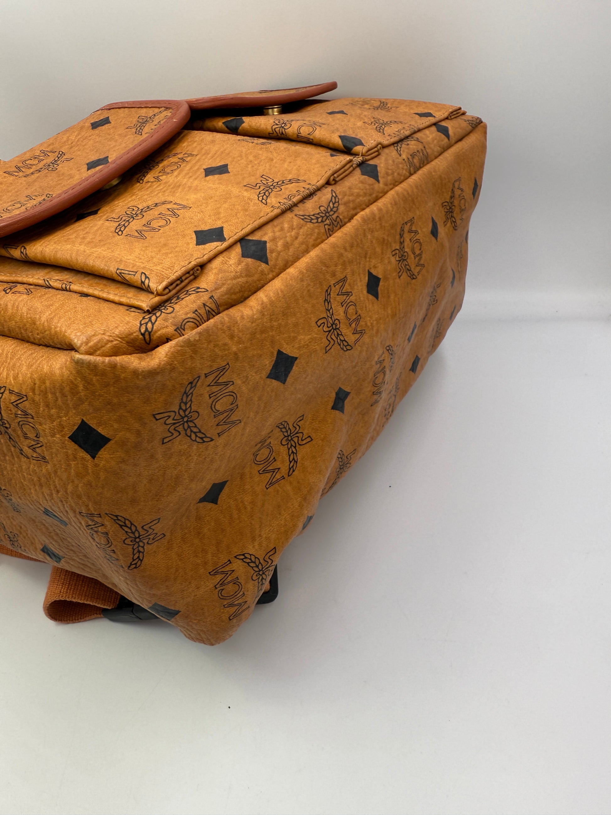 MCM Cognac Coated Canvas Visetos Backpack