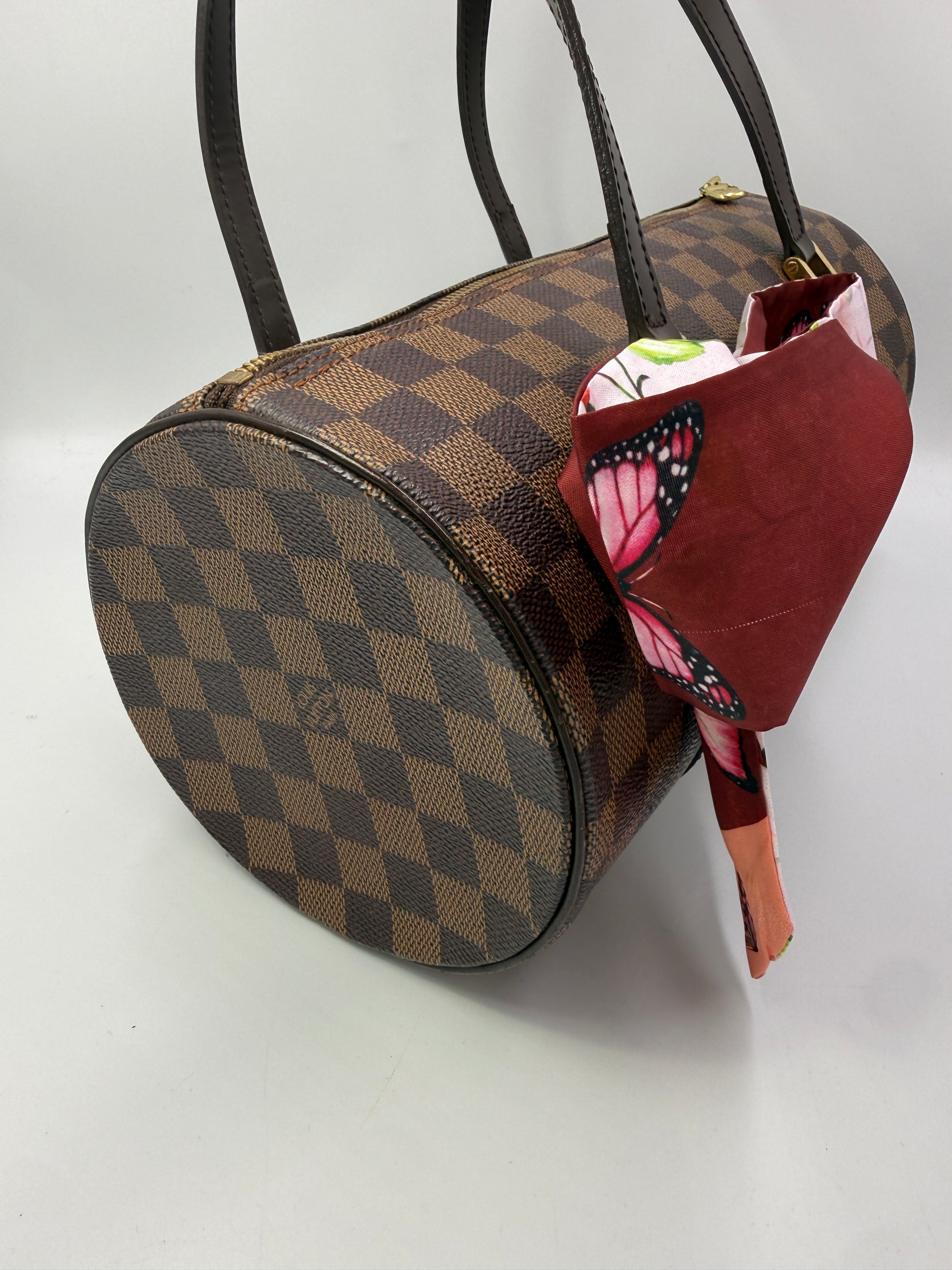 Add a touch of timeless Louis Vuitton elegance to your collection with this pre-owned Damier Ebene Papillon 30—a beloved silhouette known for its chic cylindrical shape and everyday versatility. Crafted in Louis Vuitton’s signature Damier Ebene coated canvas with rich chocolate-brown leather trim, this piece perfectly blends sophistication with functionality.