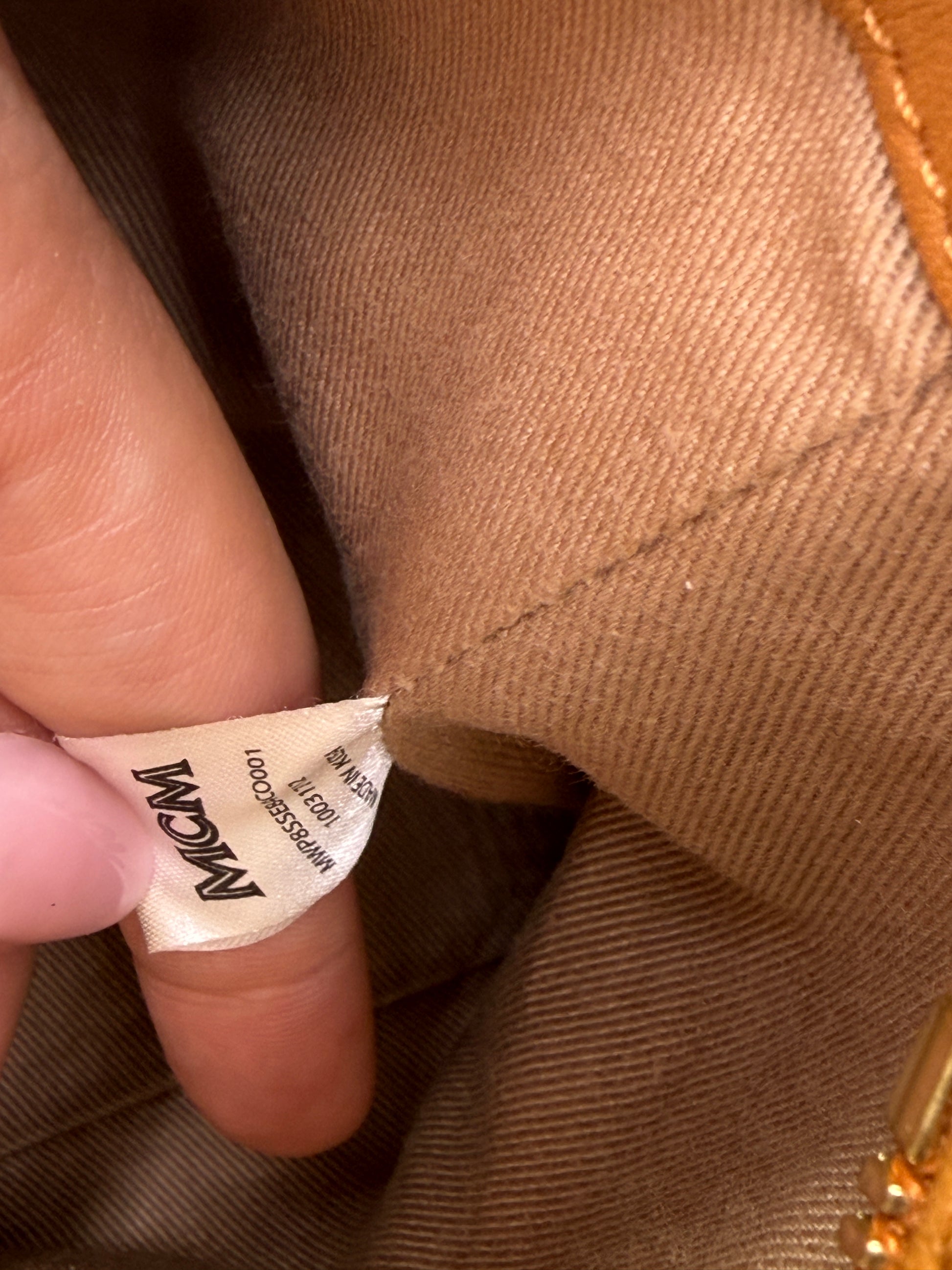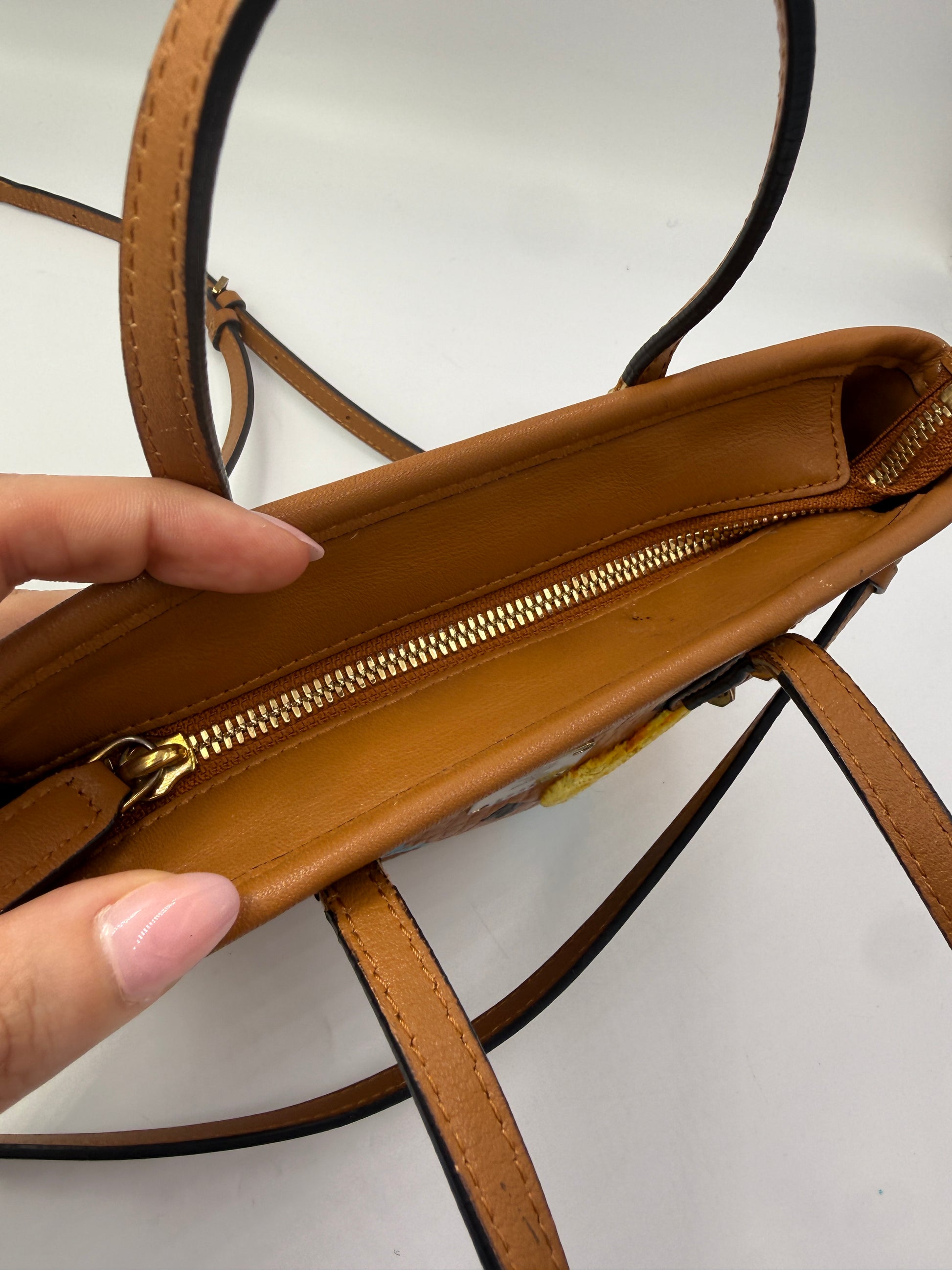 MCM Cognac Mini Floral Visetos Tote Crossbody Bag